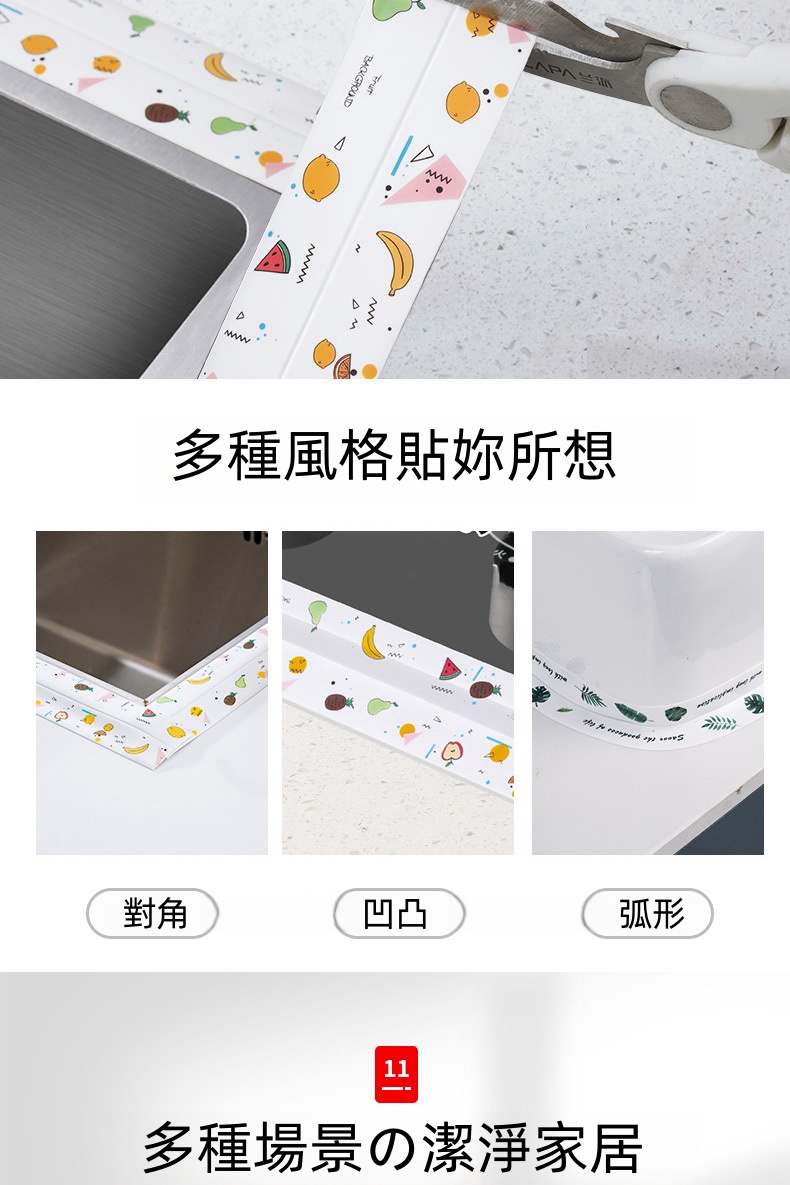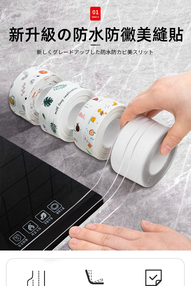 7分鐘前限時搶購 美縫貼防水防霉廚房水槽洗碗灶台封邊擋水條,衛生間馬桶邊緣縫隙貼 - 【嘗鮮價】3入組-NT$980