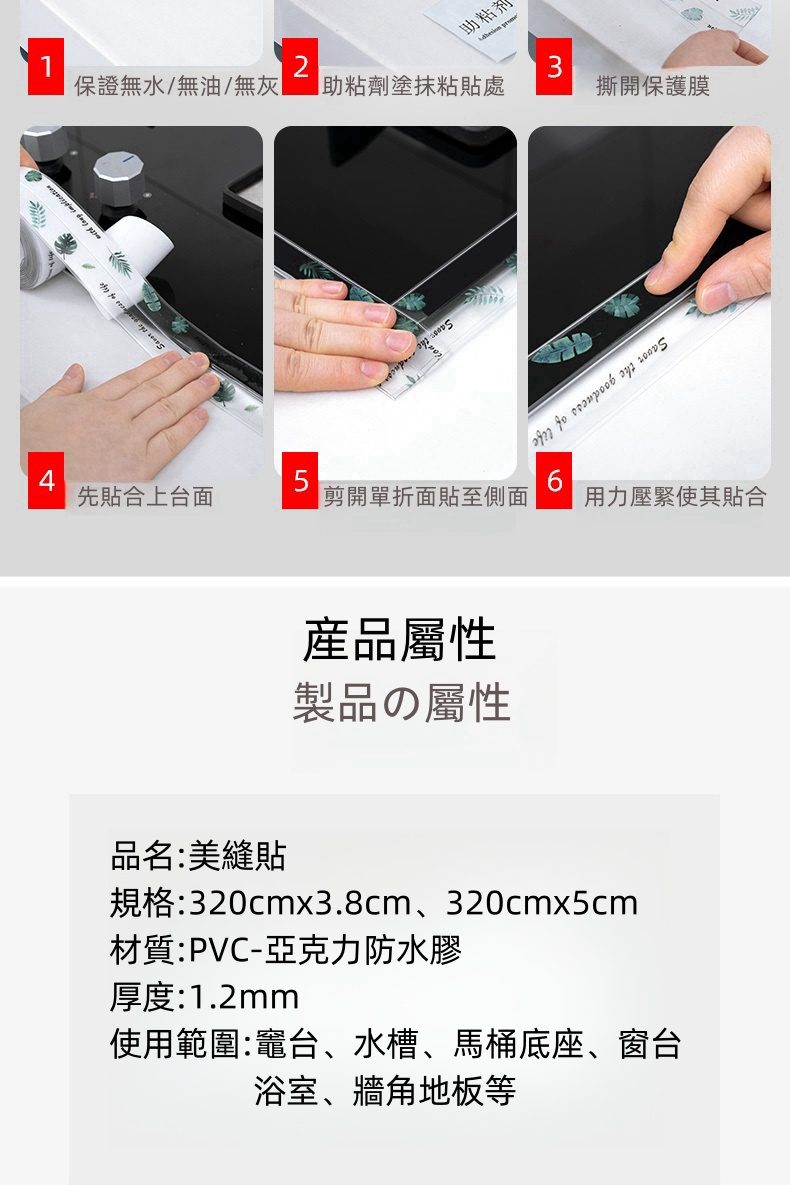 2分鐘前限時搶購 美縫貼防水防霉廚房水槽洗碗灶台封邊擋水條,衛生間馬桶邊緣縫隙貼 - 【嘗鮮價】3入組-NT$980